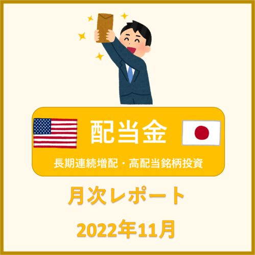 2022年11月の配当金月次レポートです。 ~簡単な自己紹介~ 30歳と29歳の夫婦、猫3匹。 夫婦の手取り年収は540万円ほど。 金融資産は1,400万円ほど。 iDeCo、つみたてNISA、投資信託、日本株、米国ETF・株を運用中。 毎月10万円以上を投資に回しています。 …